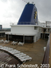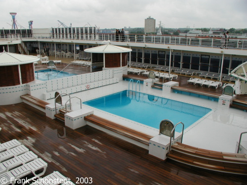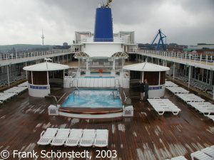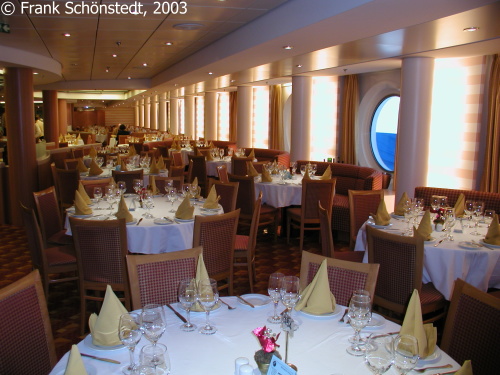 MS Mistral zur Zeit der Aufnahme in Fahrt für: Festival Kreuzfahrten heute weiterhin als Mistral für: Iberojet BRZ: 47270 Länge: 216.0m Breite: 28.8m Tiefgang: 6.8m Passagiere: 1196 Kabinen: 598 mit Balkon: 80 Decks: 8 Pools: 2 Restaurants: 3 Besatzung: 480 Geschwindigkeit: 20.0 Knoten Bauwerft: Chantiers de l´Atlantique, Frankreich Taufe und Indienststellung: 25.06.1999 |